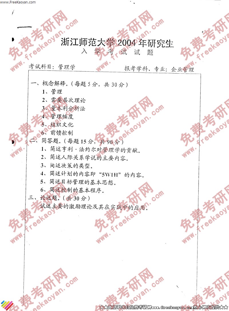 相关话题/浙江师范大学 半岛在线注册真题 管理学