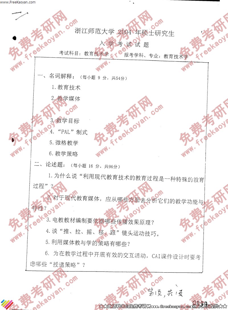 浙江师范大学2004年半岛在线注册真题-教育技术学