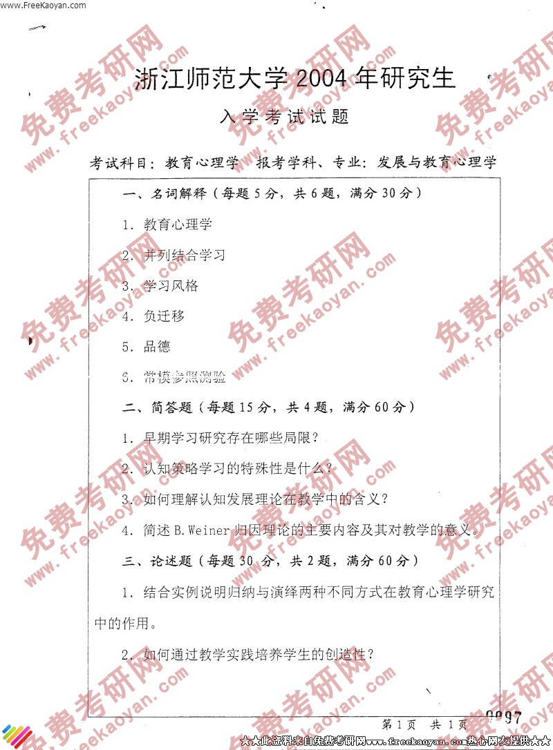 专业课半岛在线注册经验 本站小编 FreeKaoyan 2018-01-22浙江师范大学2004年半岛在线注册真题-教育技术学