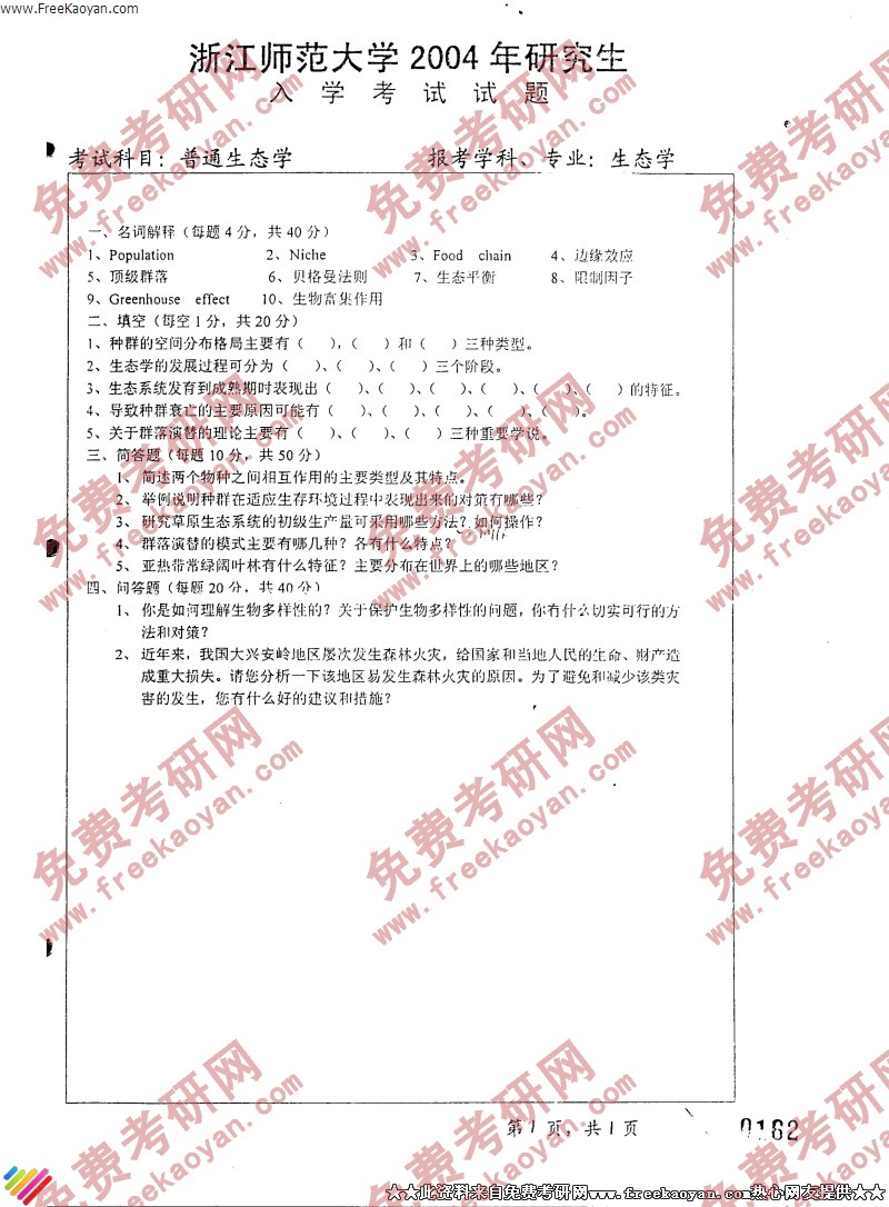 专业课半岛在线注册经验 本站小编 FreeKaoyan 2018-01-22浙江师范大学2004年半岛在线注册真题-科学基础