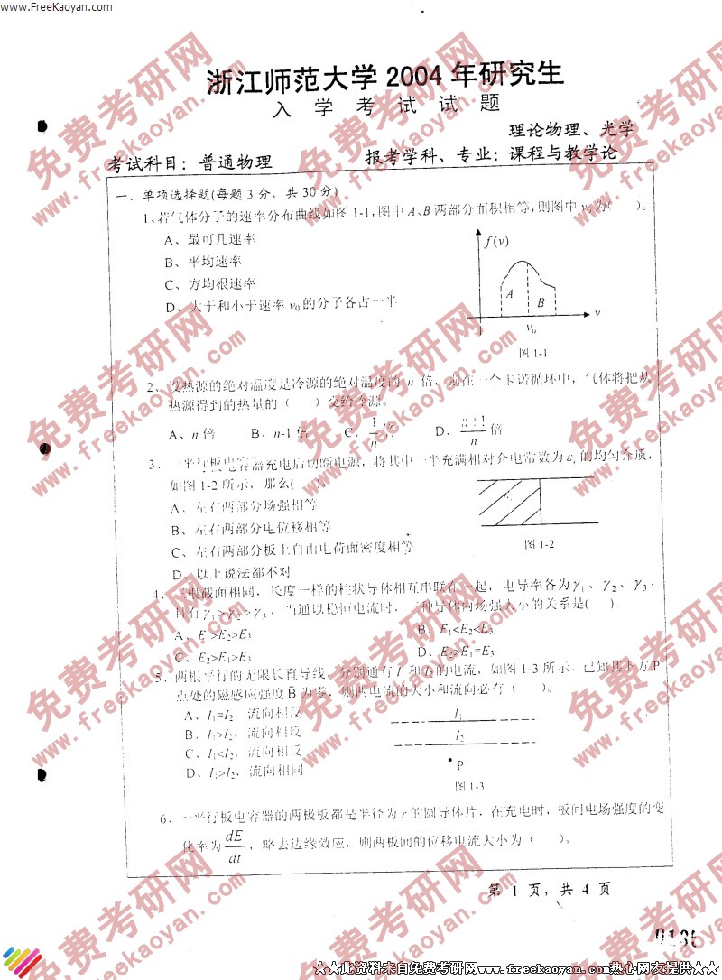浙江师范大学2004年半岛在线注册真题-普通物理