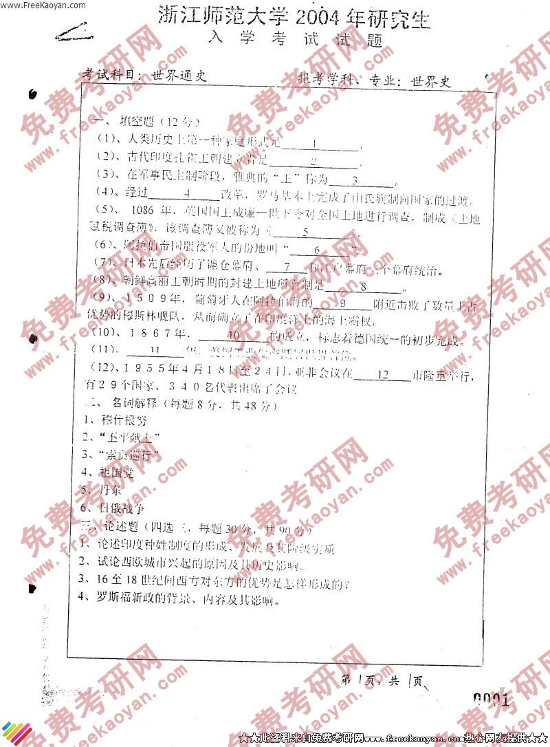 专业课半岛在线注册经验 本站小编 FreeKaoyan 2018-01-22浙江师范大学2004年半岛在线注册真题-历史教学综合基础