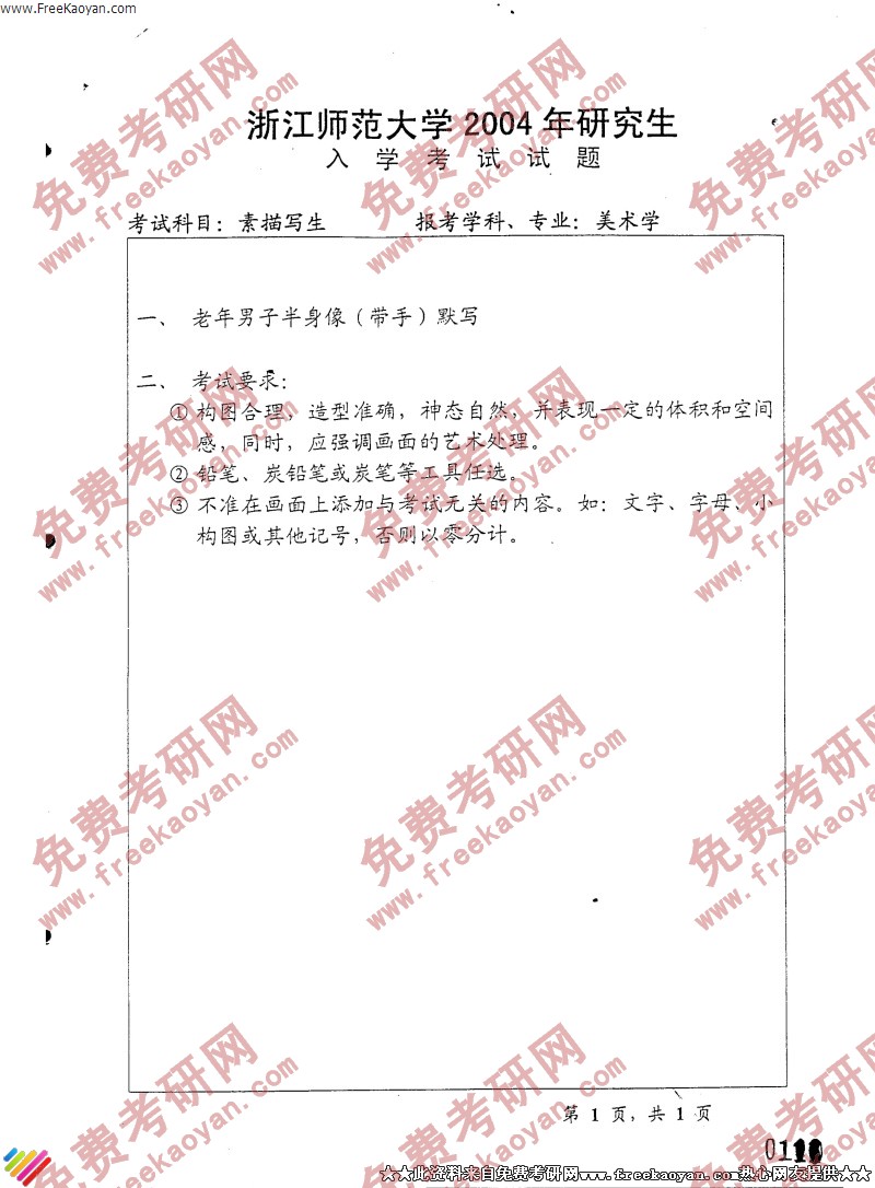 浙江师范大学2004年半岛在线注册真题-素描写生