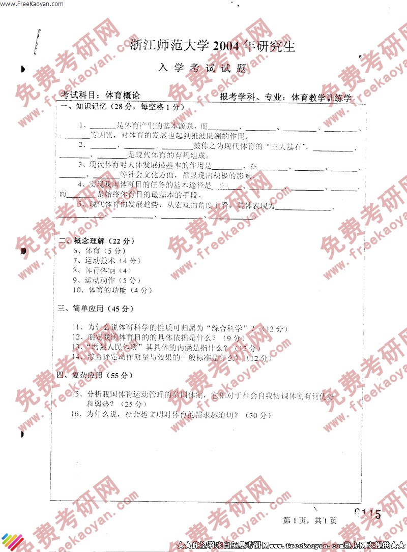 浙江师范大学2004年半岛在线注册真题-体育概论