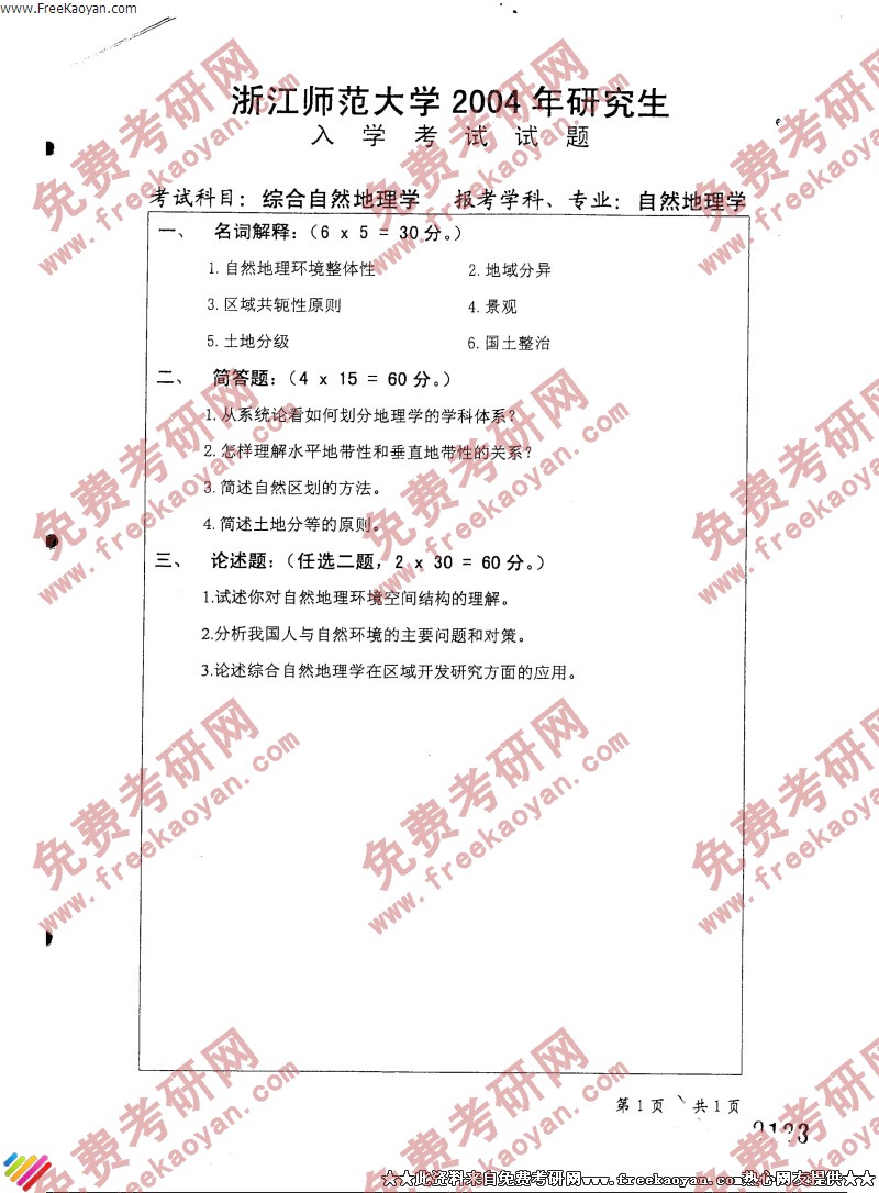 相关话题/半岛在线注册真题 浙江师范大学 自然地理学 综合