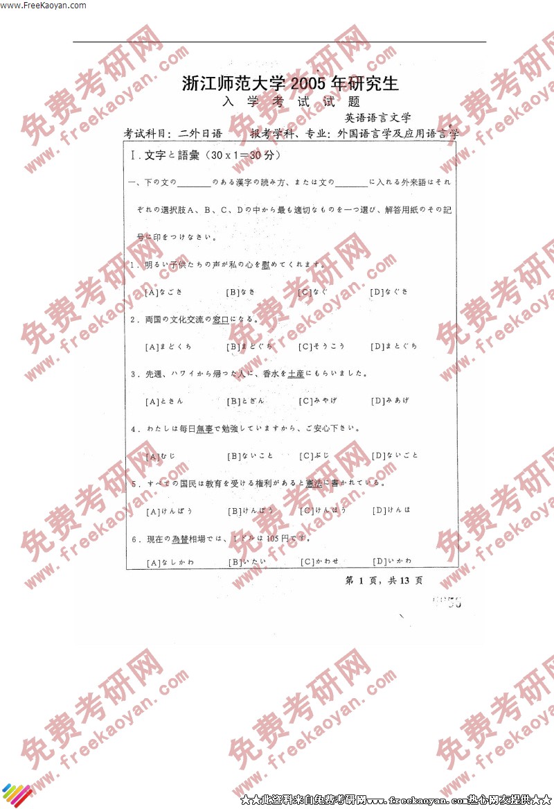 浙江师范大学2005年半岛在线注册真题-二外日语