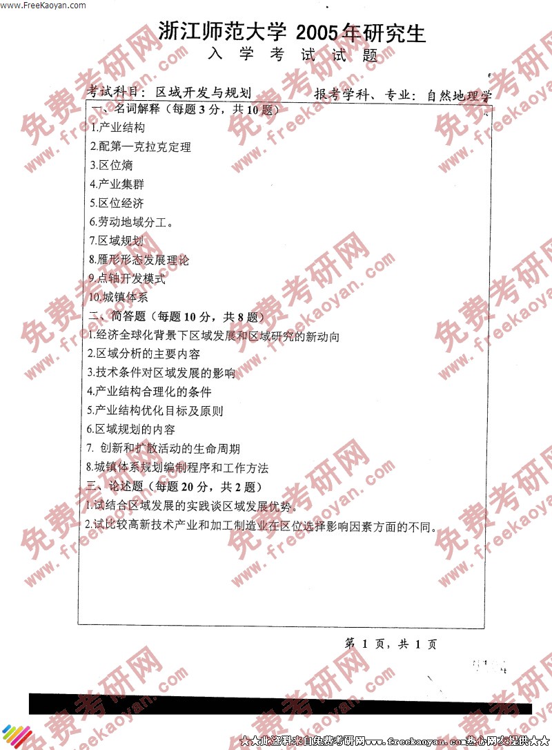 浙江师范大学2005年半岛在线注册真题-区域开发与规划