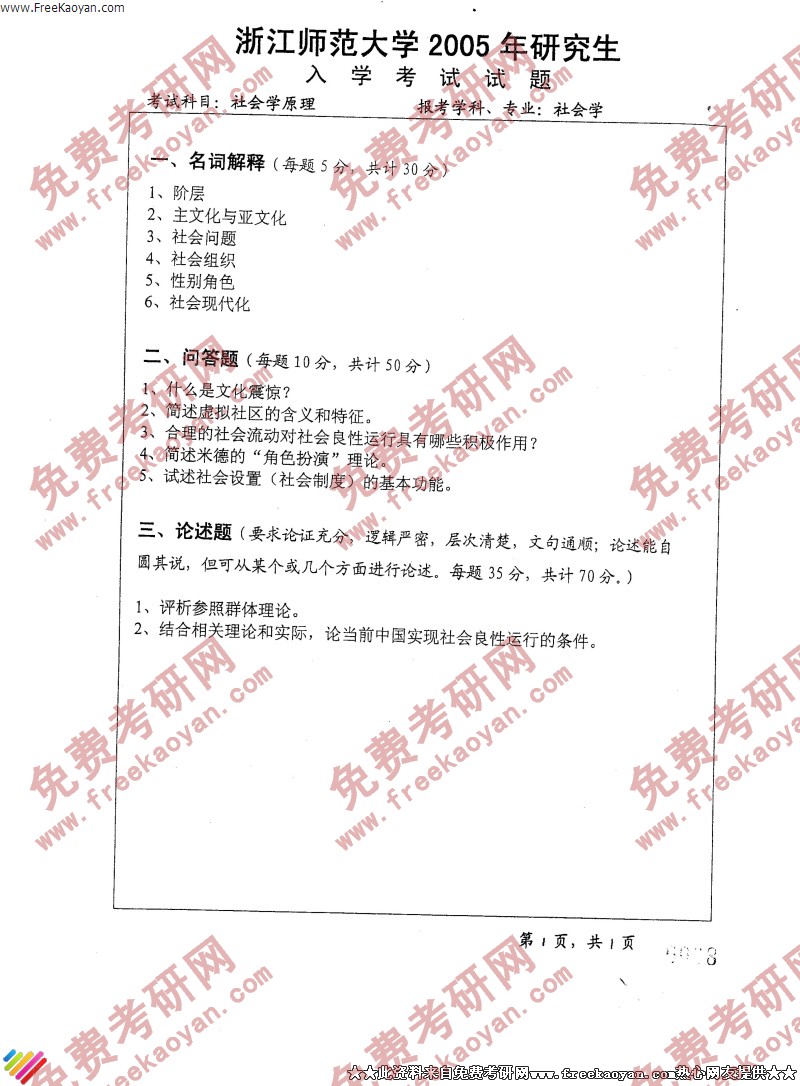 浙江师范大学2005年半岛在线注册真题-社会学原理