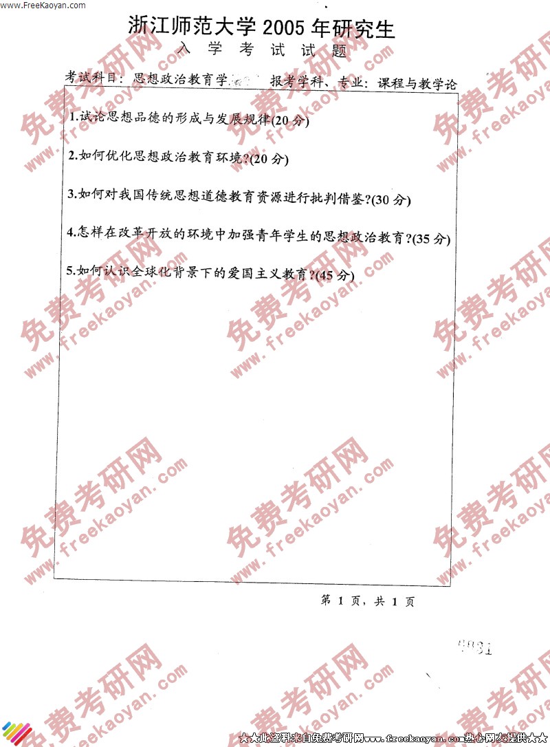 浙江师范大学2005年半岛在线注册真题-思想政治教育学