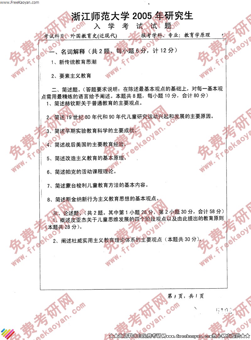 相关话题/半岛在线注册真题 浙江师范大学 教育史 外国