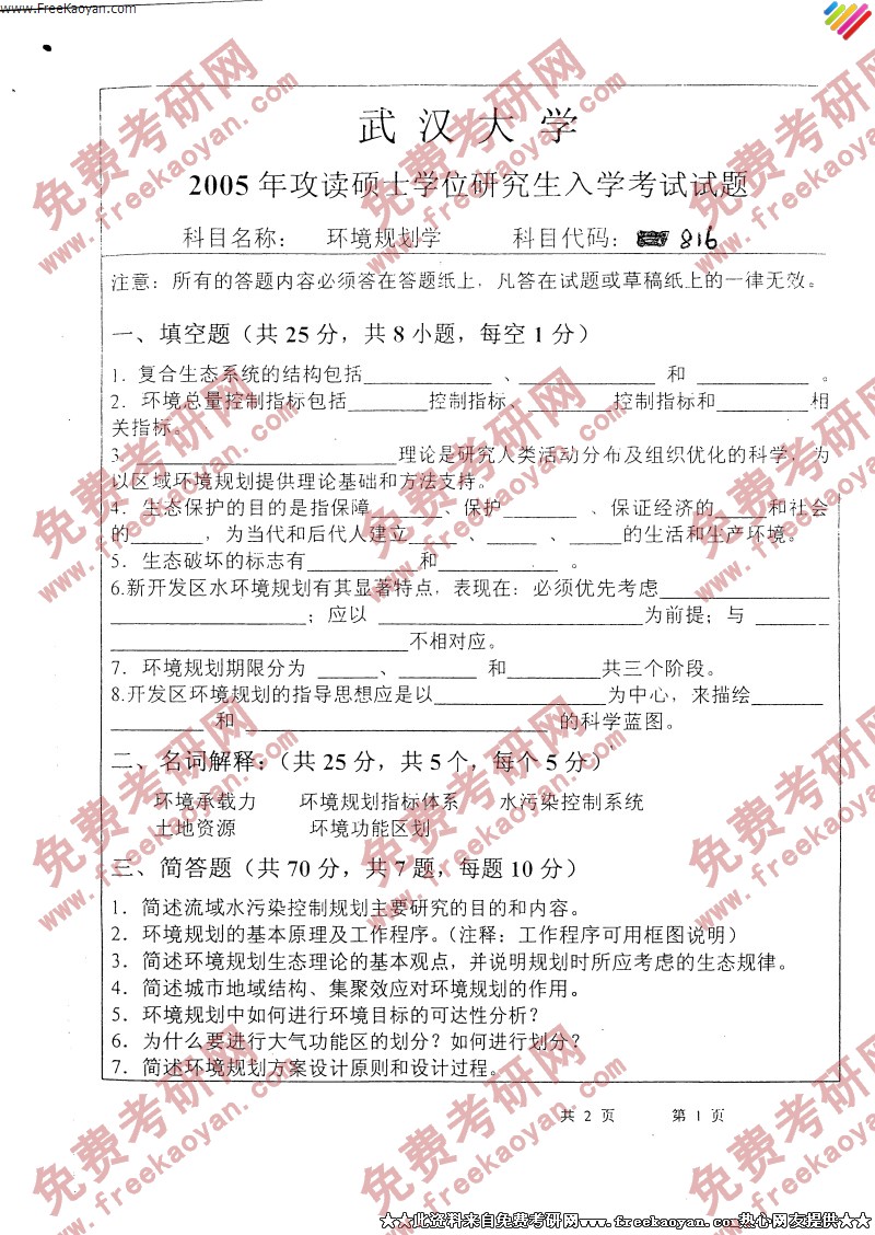 相关话题/半岛在线注册真题 武汉大学 环境规划