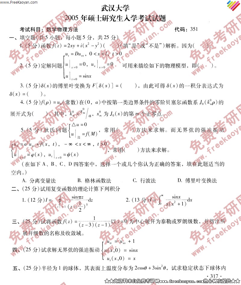 武汉大学2005年半岛在线注册真题-数学物理方法