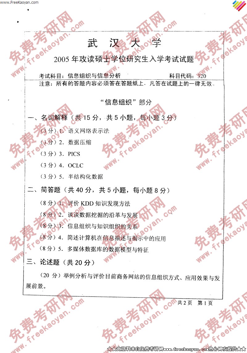 武汉大学2005年半岛在线注册真题-信息组织与信息分析
