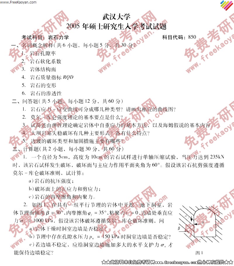 武汉大学2005年半岛在线注册真题-岩石力学