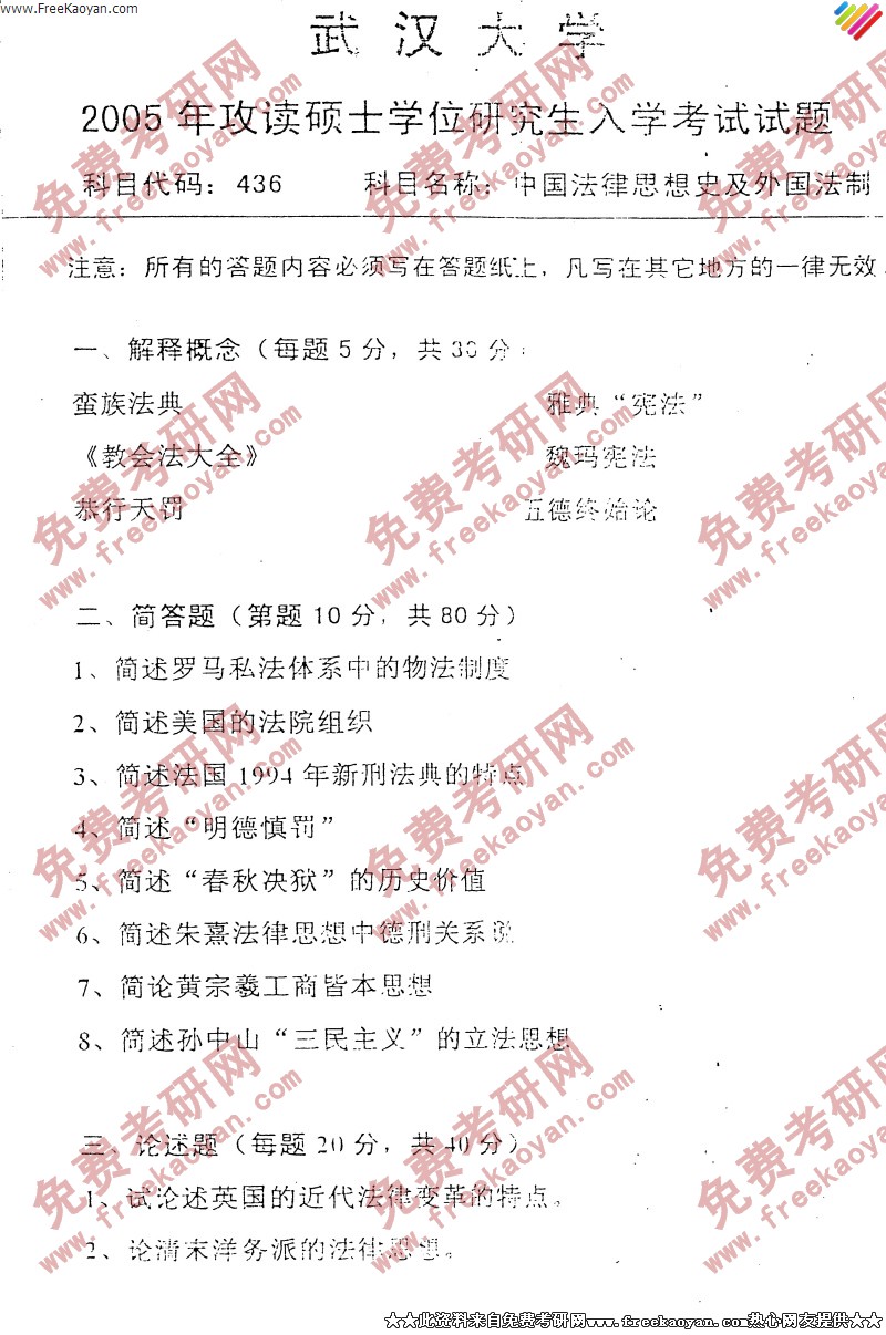 武汉大学2005年半岛在线注册真题-中国法律思想史及外国法制