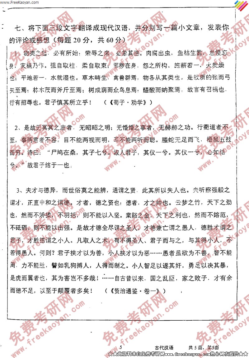 专业课半岛在线注册经验 本站小编 FreeKaoyan 2018-01-22武汉大学2005年半岛在线注册真题-中国历史文献