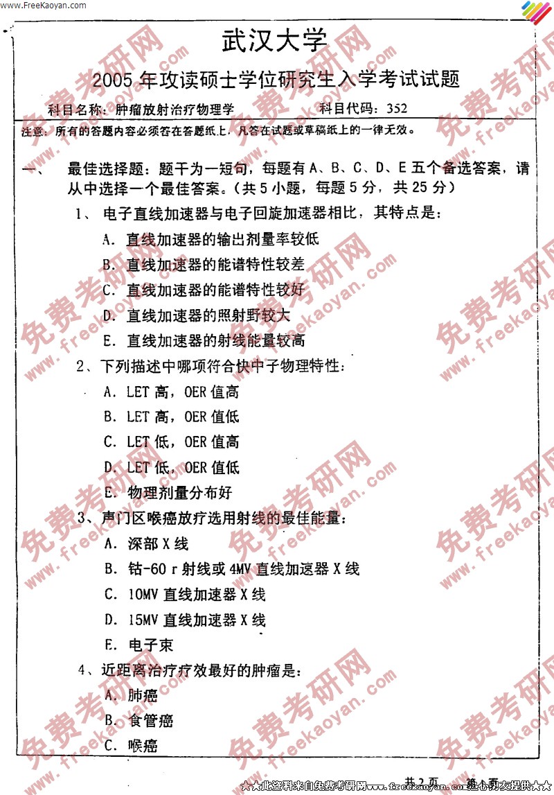 武汉大学2005年半岛在线注册真题-肿瘤放射治疗物理学