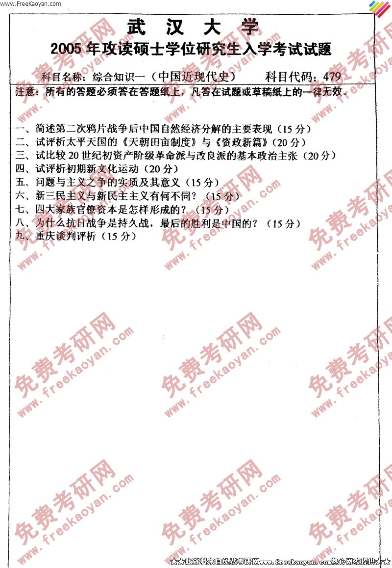 专业课半岛在线注册经验 本站小编 FreeKaoyan 2018-01-22武汉大学2005年半岛在线注册真题-综合知识-2005