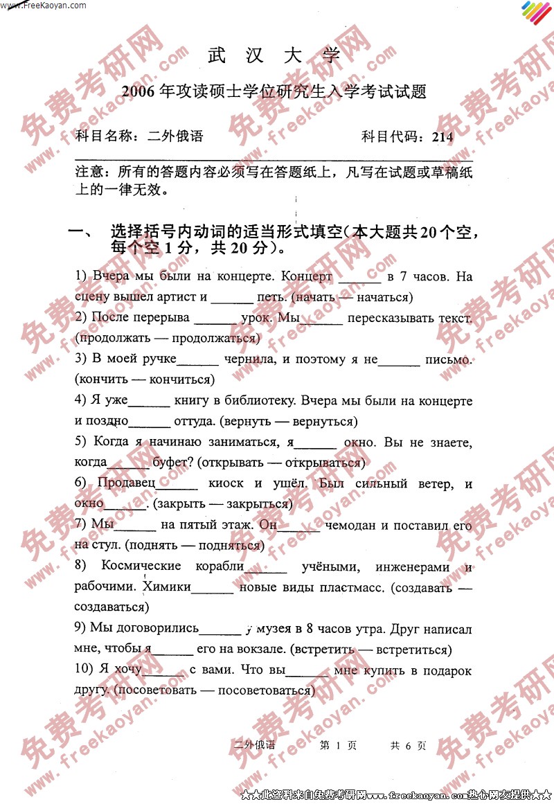 武汉大学2006年半岛在线注册真题-俄语(二外)