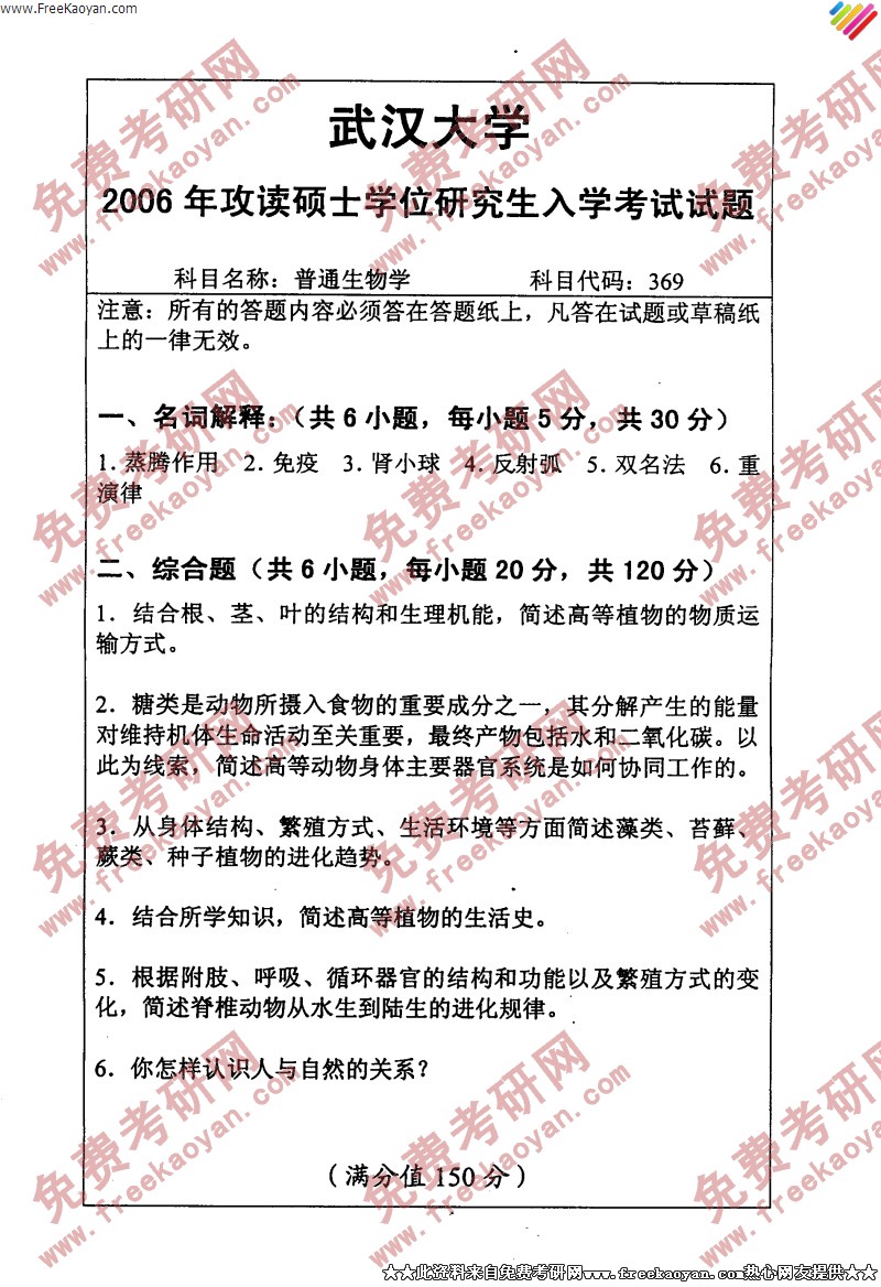 相关话题/武汉大学 半岛在线注册真题 普通生物学