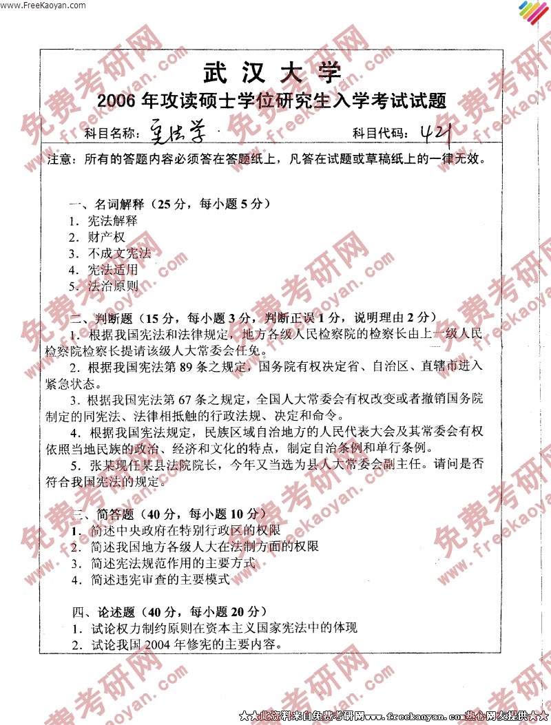 专业课半岛在线注册经验 本站小编 FreeKaoyan 2018-01-22武汉大学2006年半岛在线注册真题-法理学