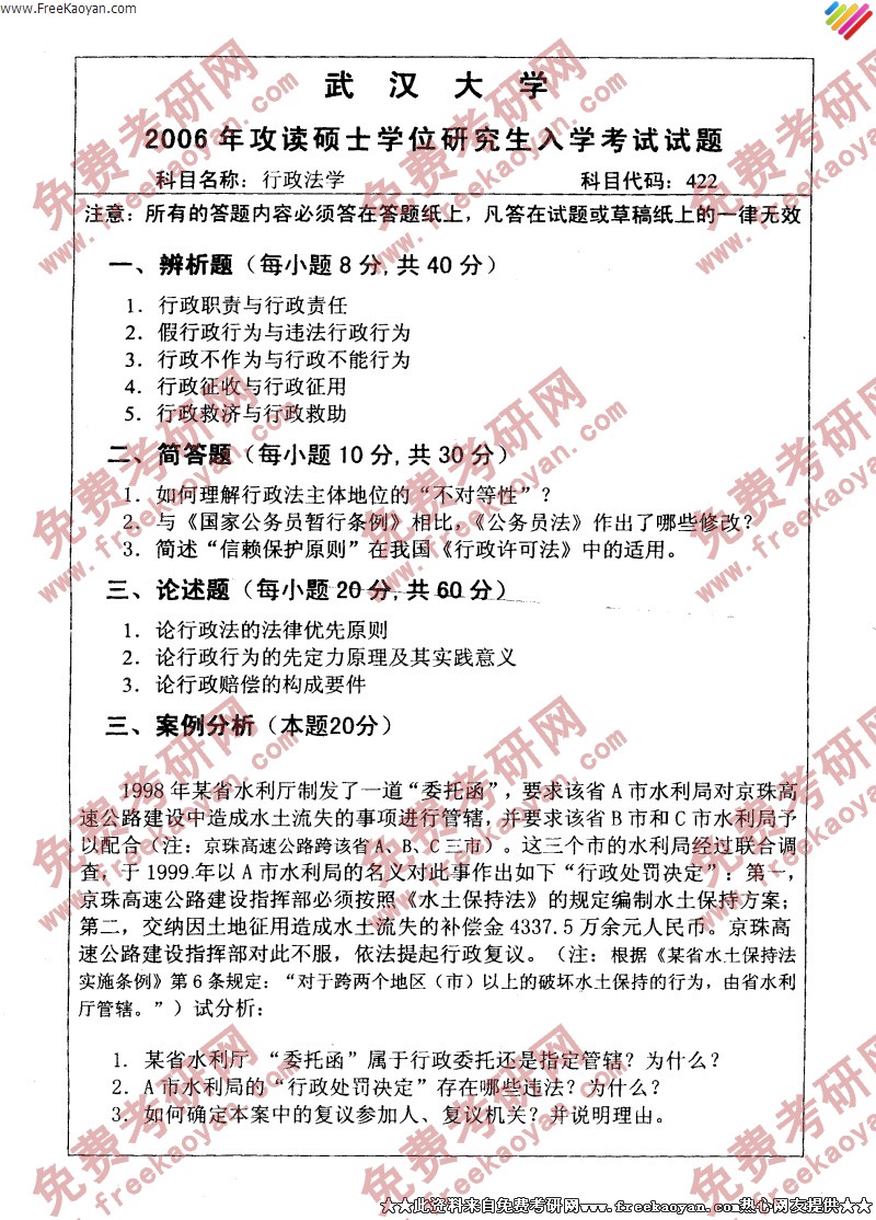 相关话题/半岛在线注册真题 武汉大学 法学 行政