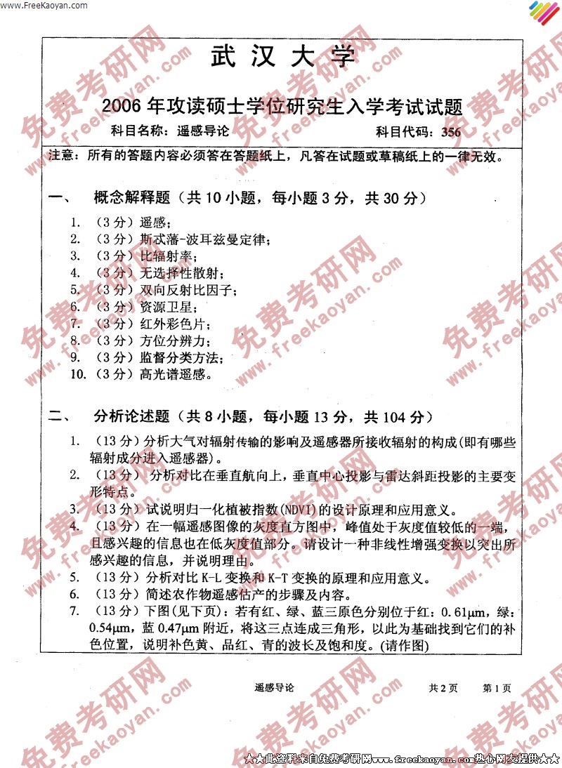 相关话题/半岛在线注册真题 遥感 武汉大学 导论