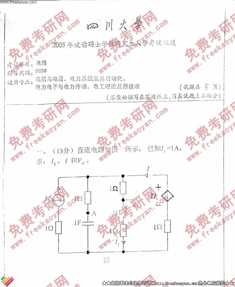 四川大学2005年半岛在线注册真题-电路
