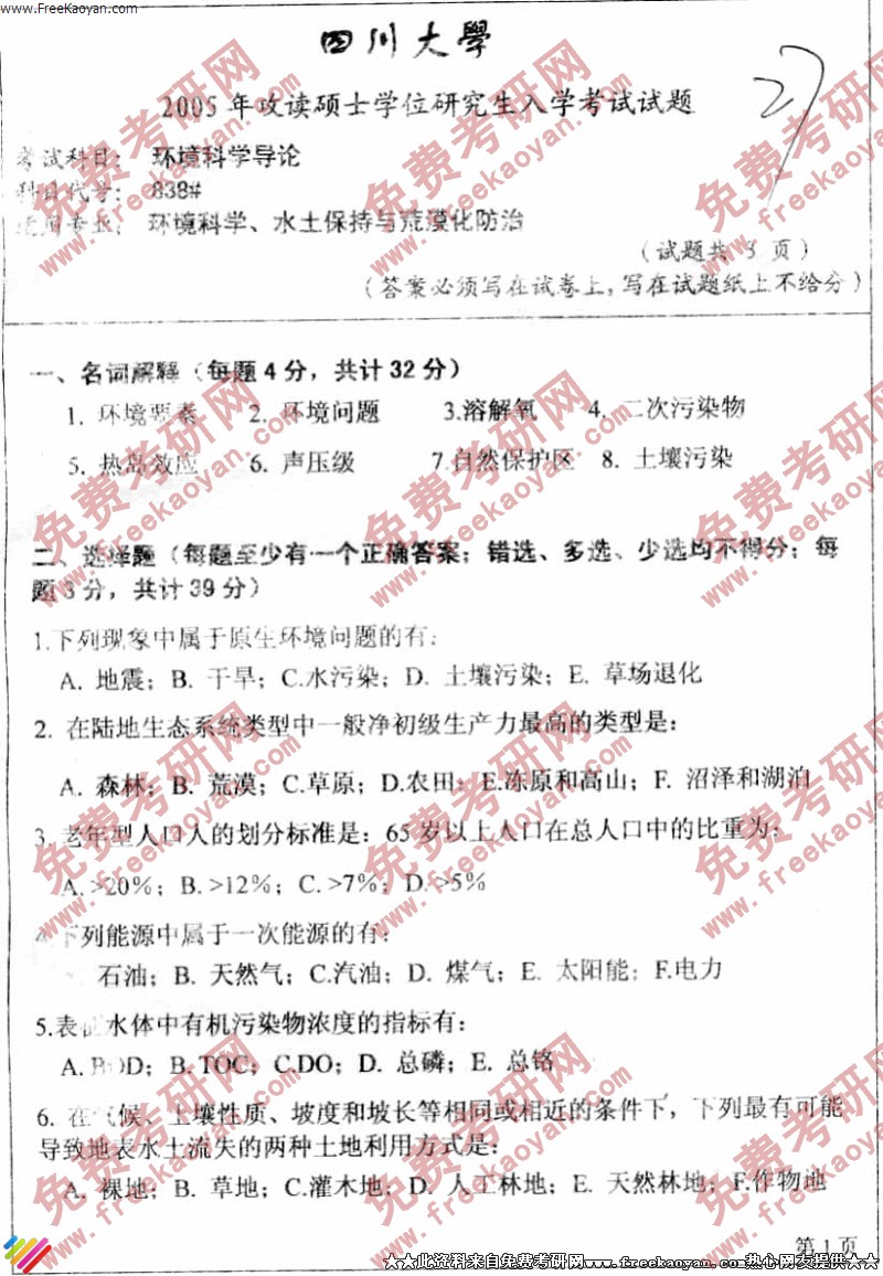 相关话题/半岛在线注册真题 环境科学 四川大学 导论