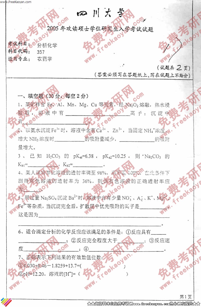 相关话题/半岛在线注册真题 四川大学 分析化学 农药
