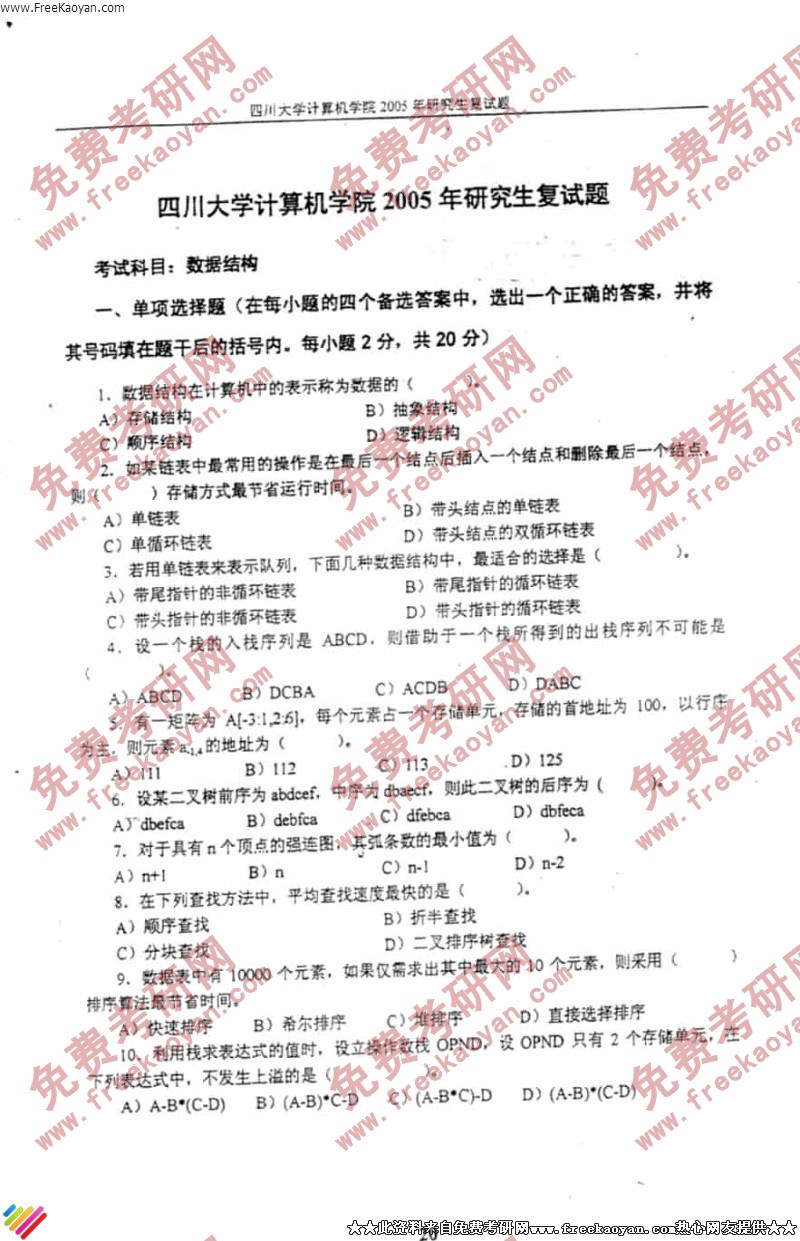 四川大学2005年半岛在线注册真题-数据结构复试题及导师名单(有答案,综合卷)