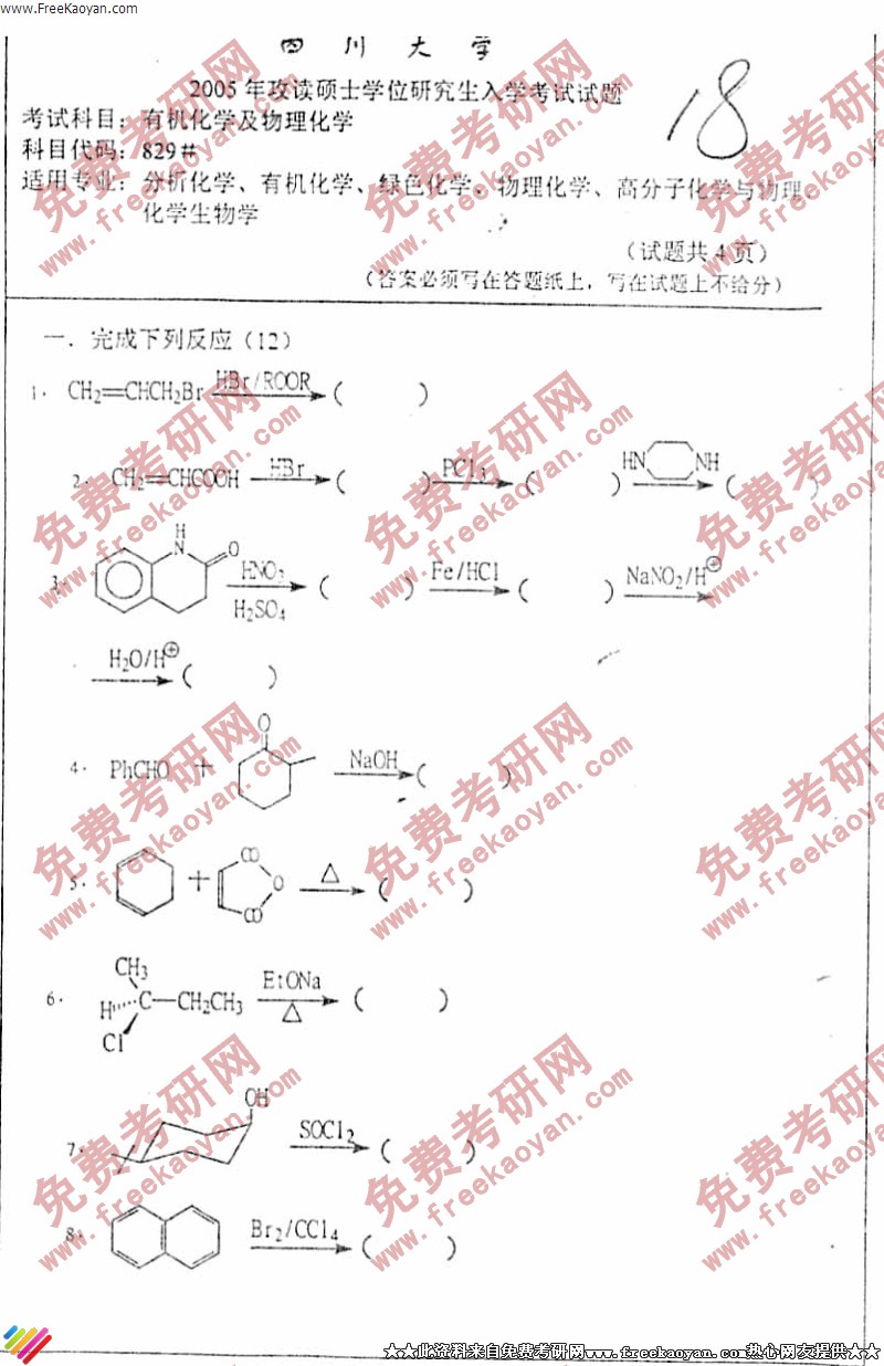 专业课半岛在线注册经验 本站小编 FreeKaoyan 2018-01-22四川大学2005年半岛在线注册真题-有机化学