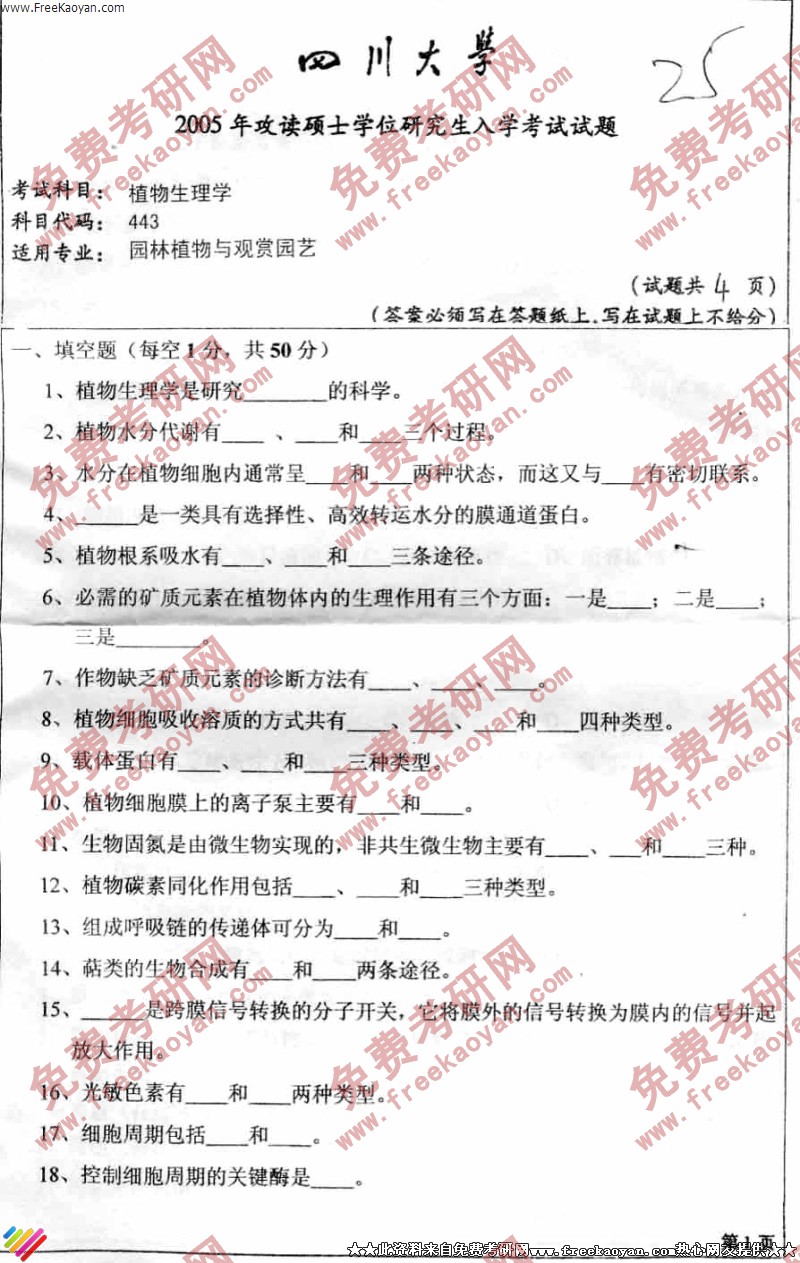 相关话题/半岛在线注册真题 四川大学 生理学 植物