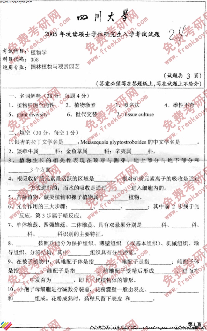 专业课半岛在线注册经验 本站小编 FreeKaoyan 2018-01-22四川大学2005年半岛在线注册真题-艺术学院综合考试