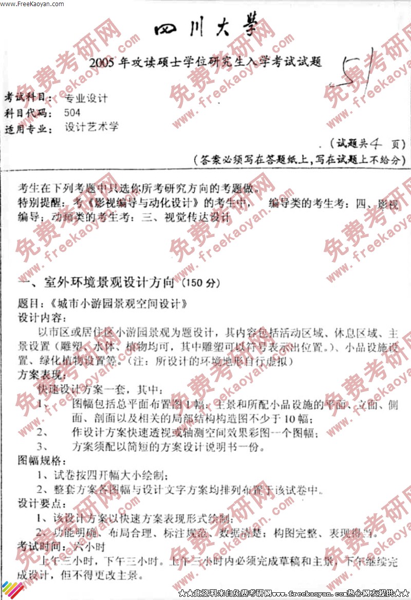 专业课半岛在线注册经验 本站小编 FreeKaoyan 2018-01-22四川大学2005年半岛在线注册真题-艺术学院综合考试