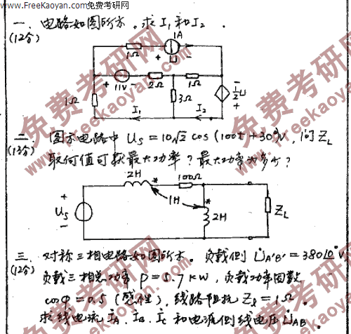 西南交通大学2000年半岛在线注册真题-电路分析