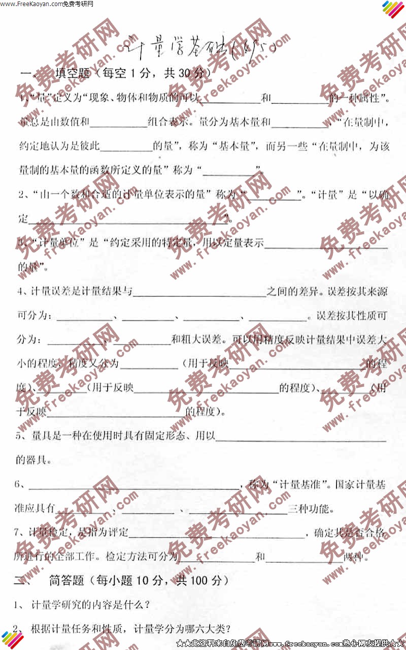 相关话题/半岛在线注册真题 西南交通大学 基础 计量学