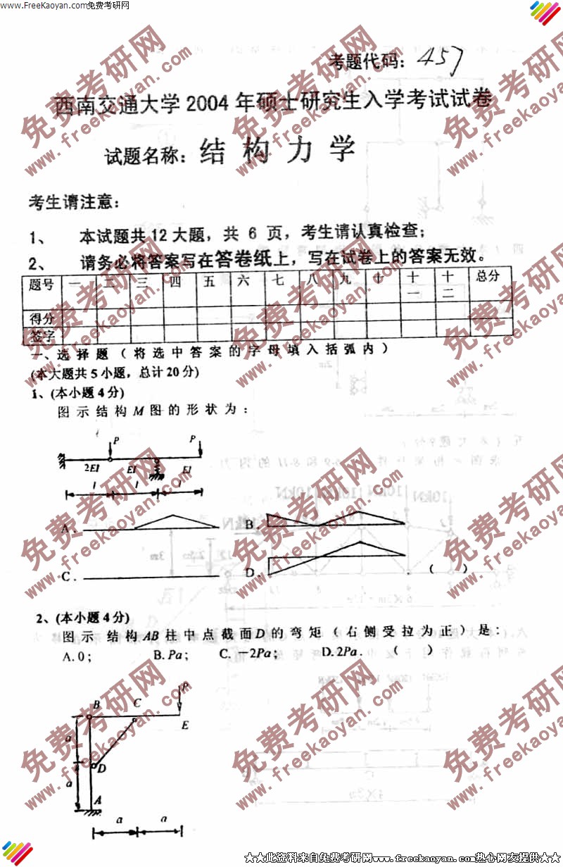 相关话题/半岛在线注册真题 西南交通大学 试题 结构力学