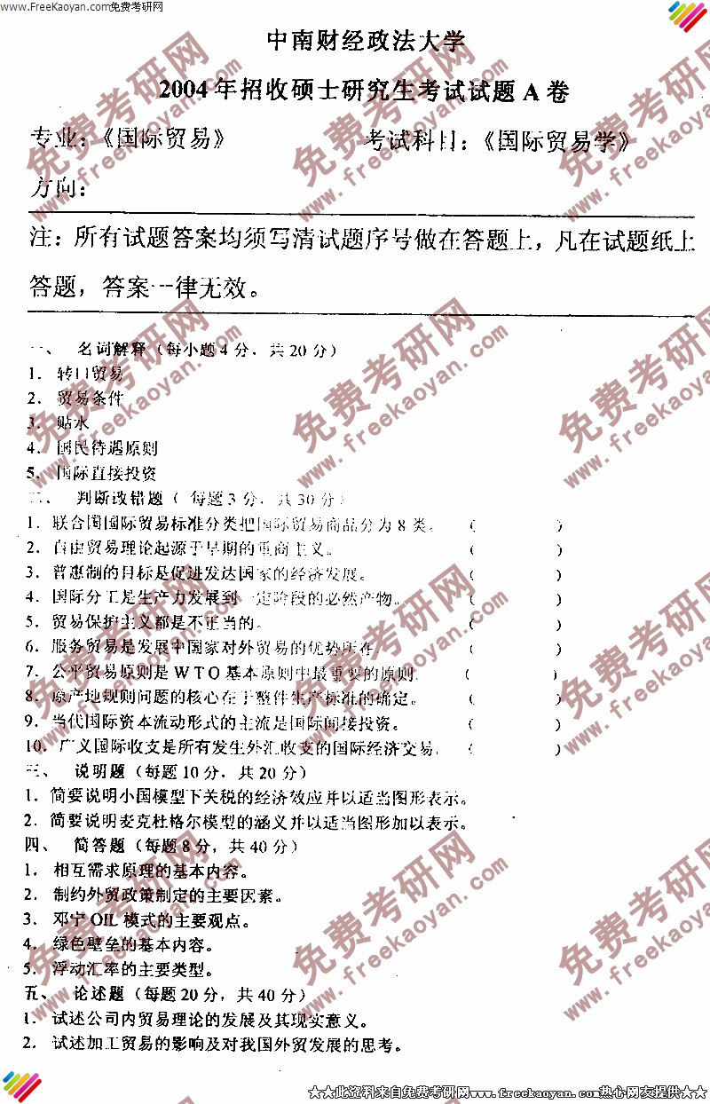 名词解释(5*6): 全部要素生产率,负投资,货币中性,准租金, 边际转换率 ,公共产品的非竞争性 简答(10*4): 比较各种市场的资源配置效率 分析信息不完全对资源配置的影响 推导总需求曲线并说明其含义 在汇率和利率由市场供求自发形成的情况下,分析资本外流所造成的影响 计算(10*2) 1 给出 ...