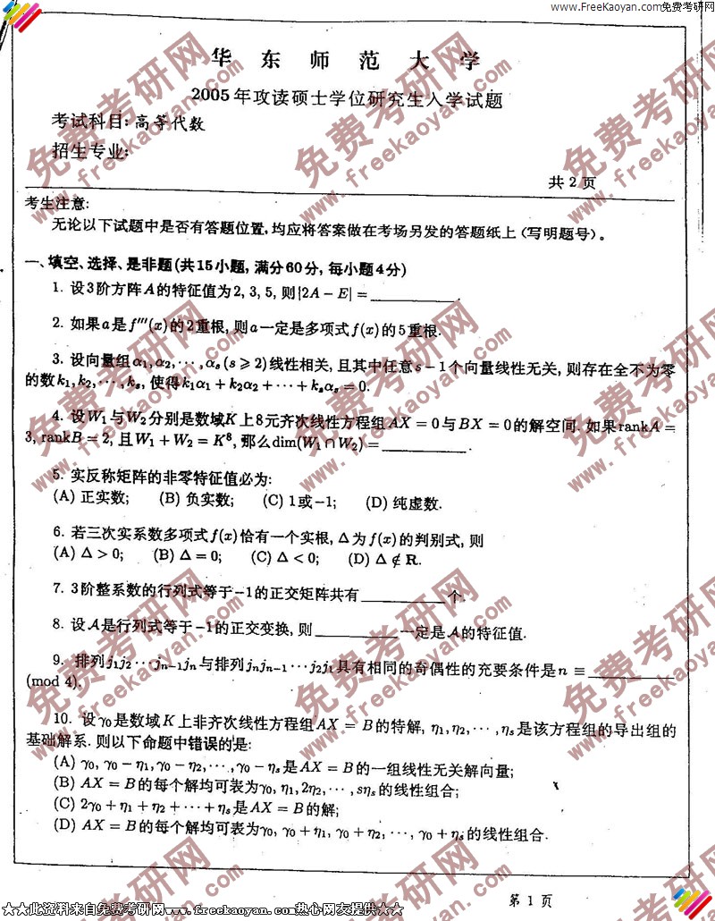 专业课半岛在线注册经验 本站小编 FreeKaoyan 2018-01-22华东师范大学2005年半岛在线注册真题-创作