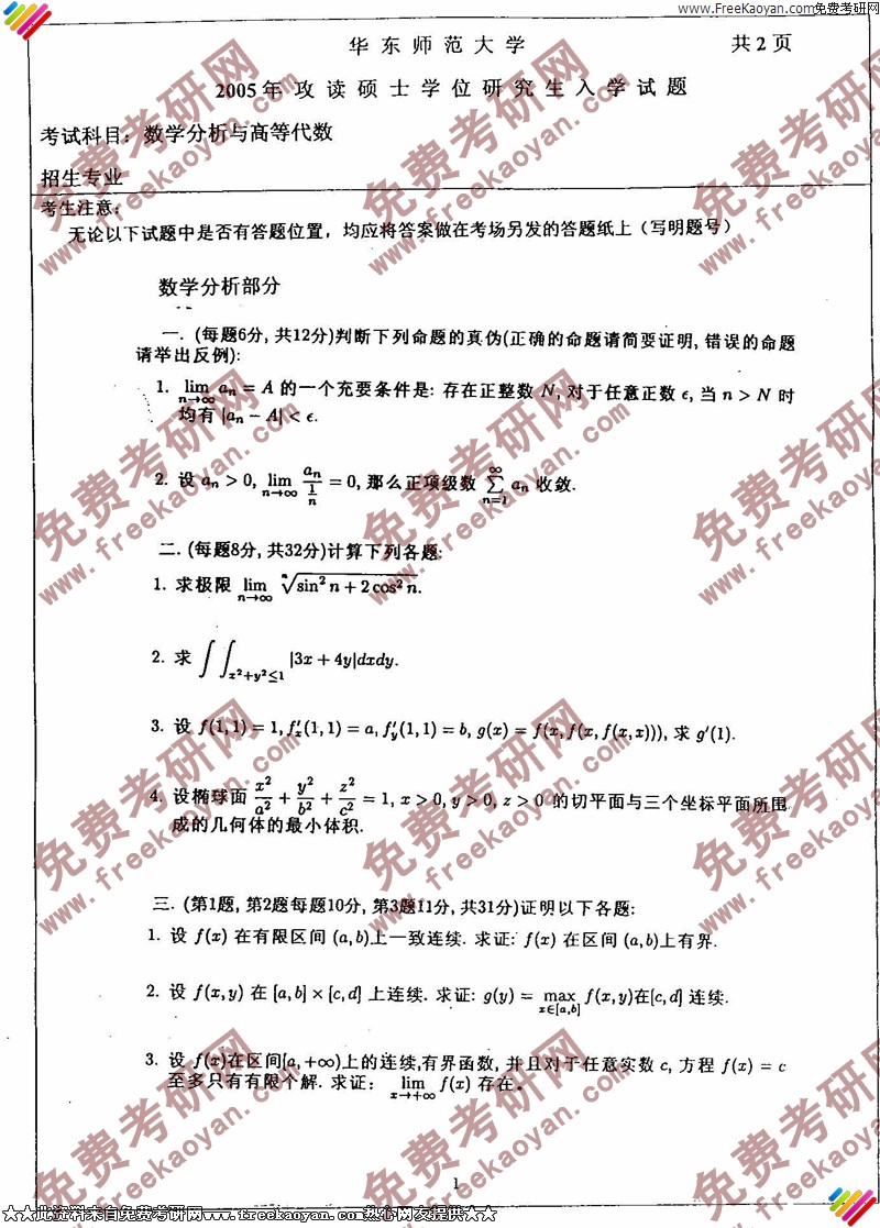 相关话题/半岛在线注册真题 华东师范大学 数学分析 高等代数