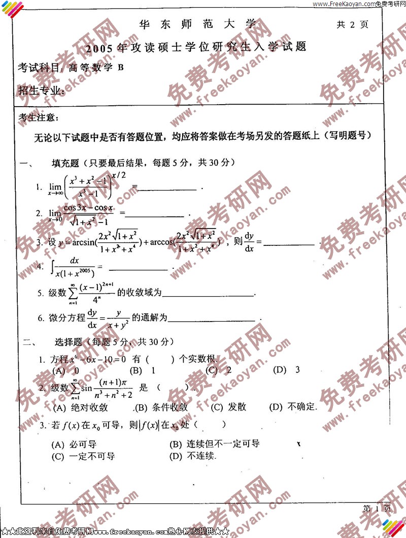 华东师范大学2005年半岛在线注册真题-高等数学(B)