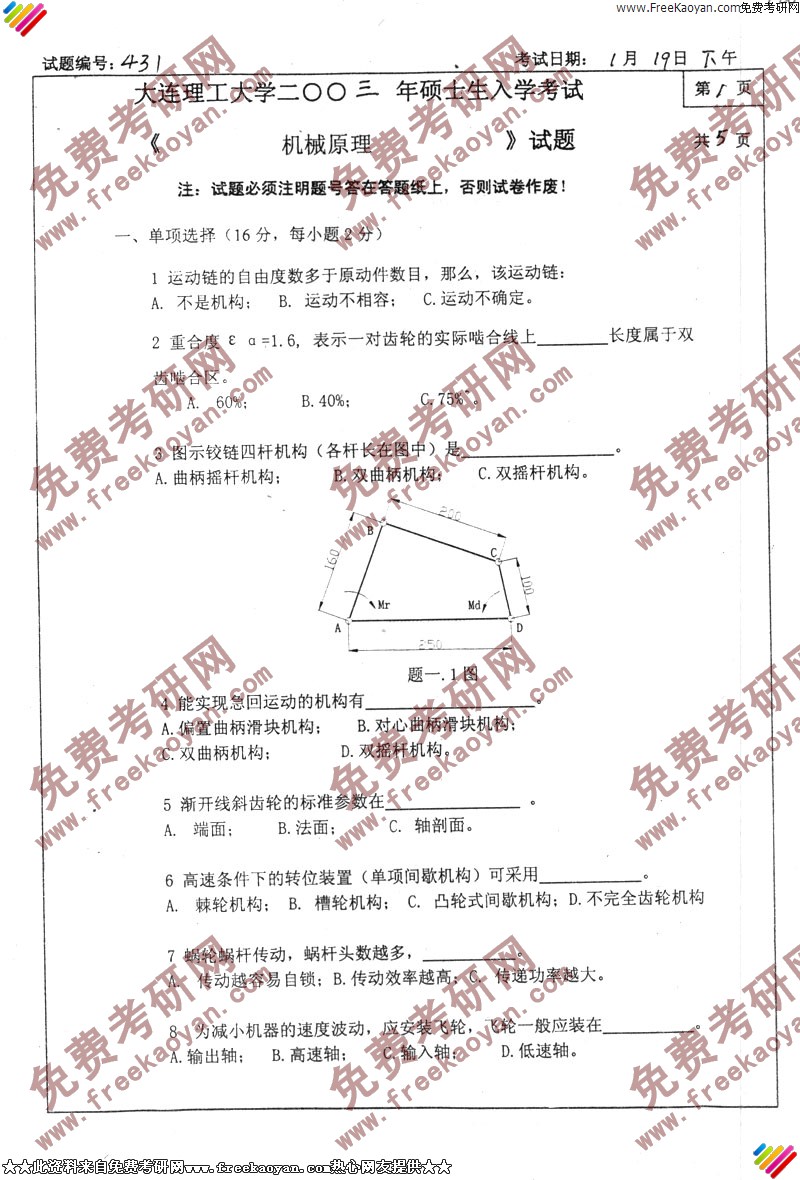 相关话题/大连理工大学 半岛在线注册真题 机械原理