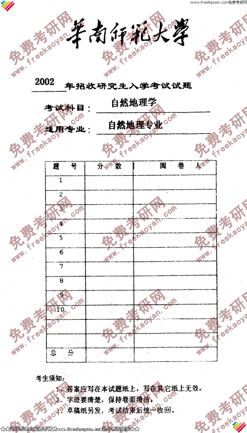 华南师范大学2002年半岛在线注册真题-自然地理学