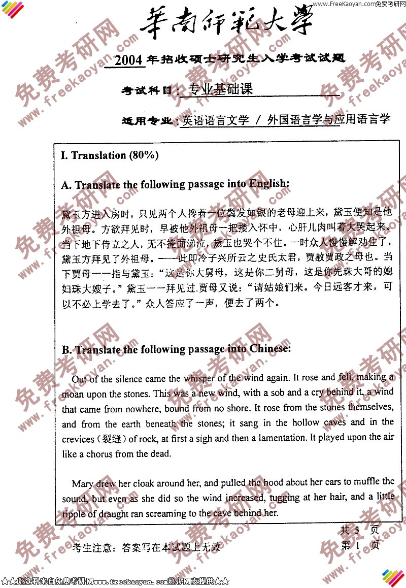 华南师范大学2004年半岛在线注册真题-英语专业基础课