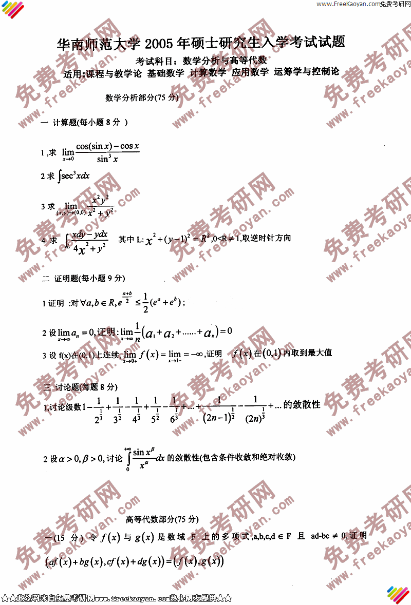 相关话题/半岛在线注册真题 华南师范大学 高等代数 数学分析