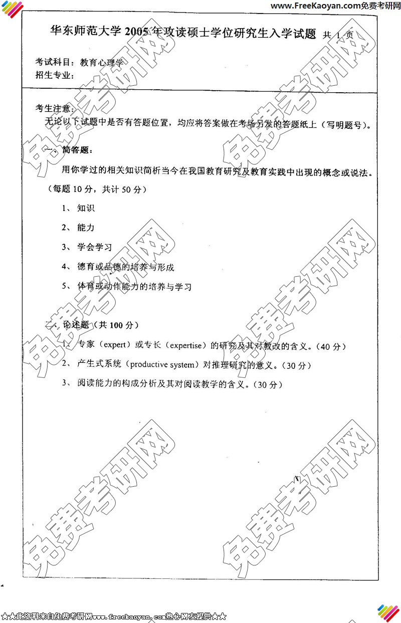 专业课半岛在线注册经验 本站小编 FreeKaoyan 2018-01-22华东师范大学2005年半岛在线注册真题-教育管理学