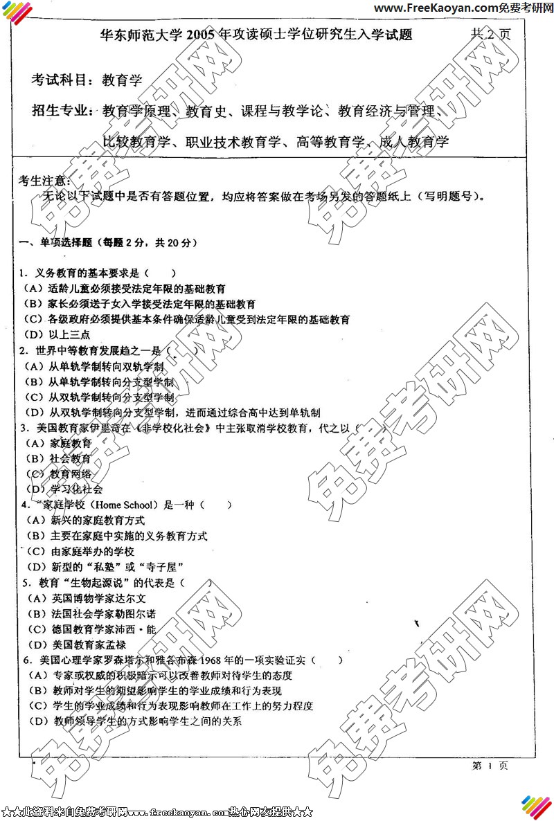 专业课半岛在线注册经验 本站小编 FreeKaoyan 2018-01-22华东师范大学2005年半岛在线注册真题-教育管理学