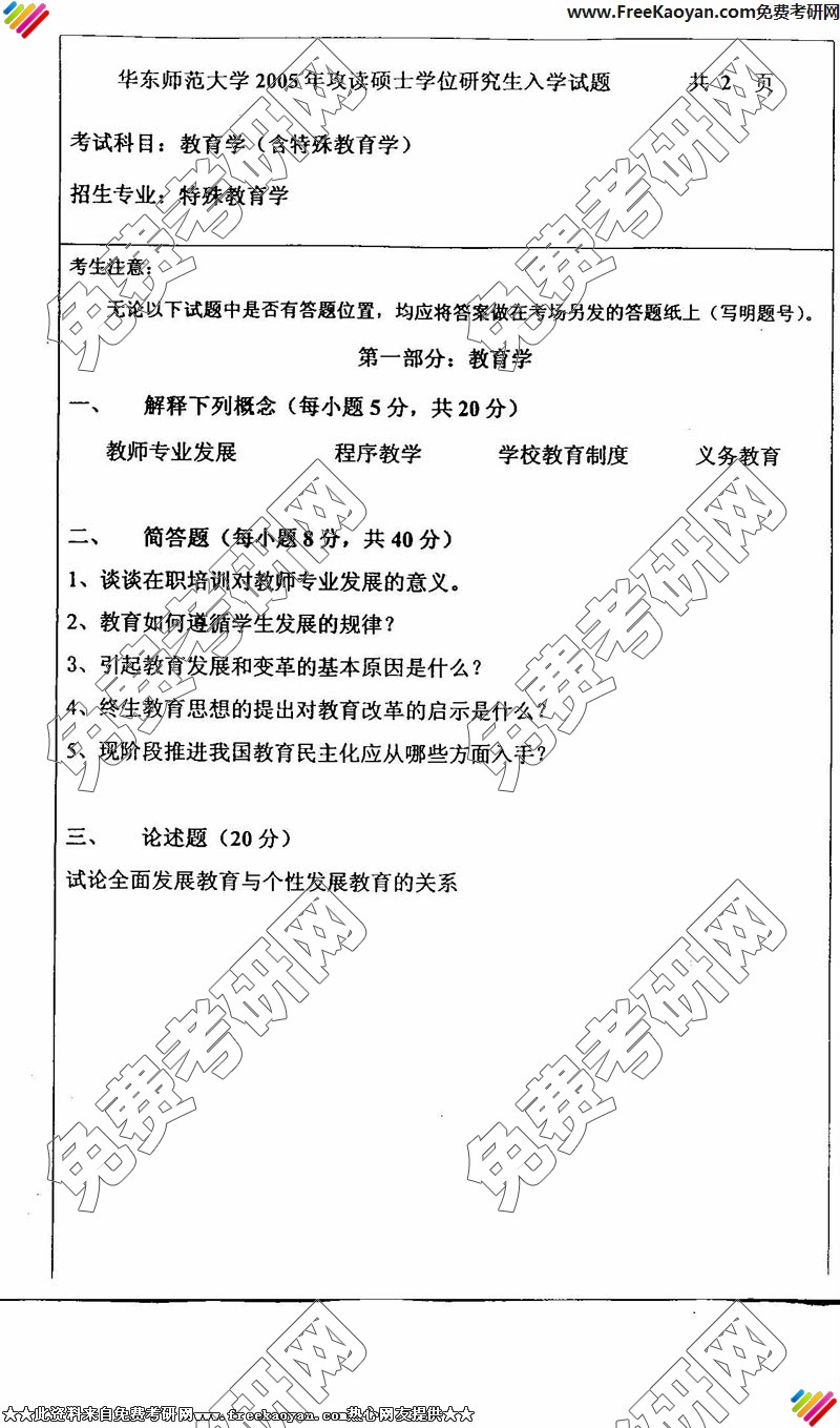 专业课半岛在线注册经验 本站小编 FreeKaoyan 2018-01-22华东师范大学2005年半岛在线注册真题-教育管理学