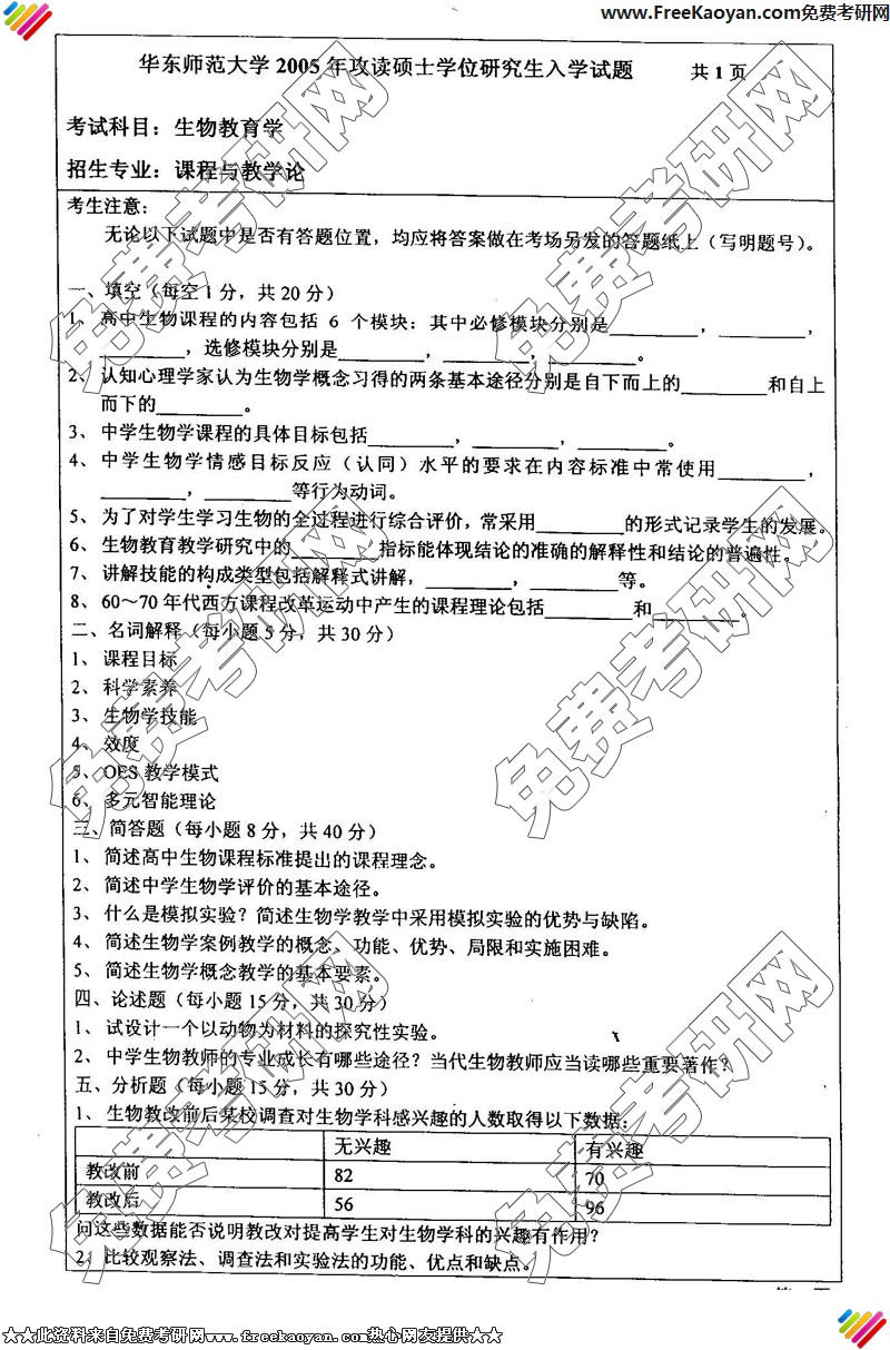 专业课半岛在线注册经验 本站小编 FreeKaoyan 2018-01-22华东师范大学2005年半岛在线注册真题-教育学